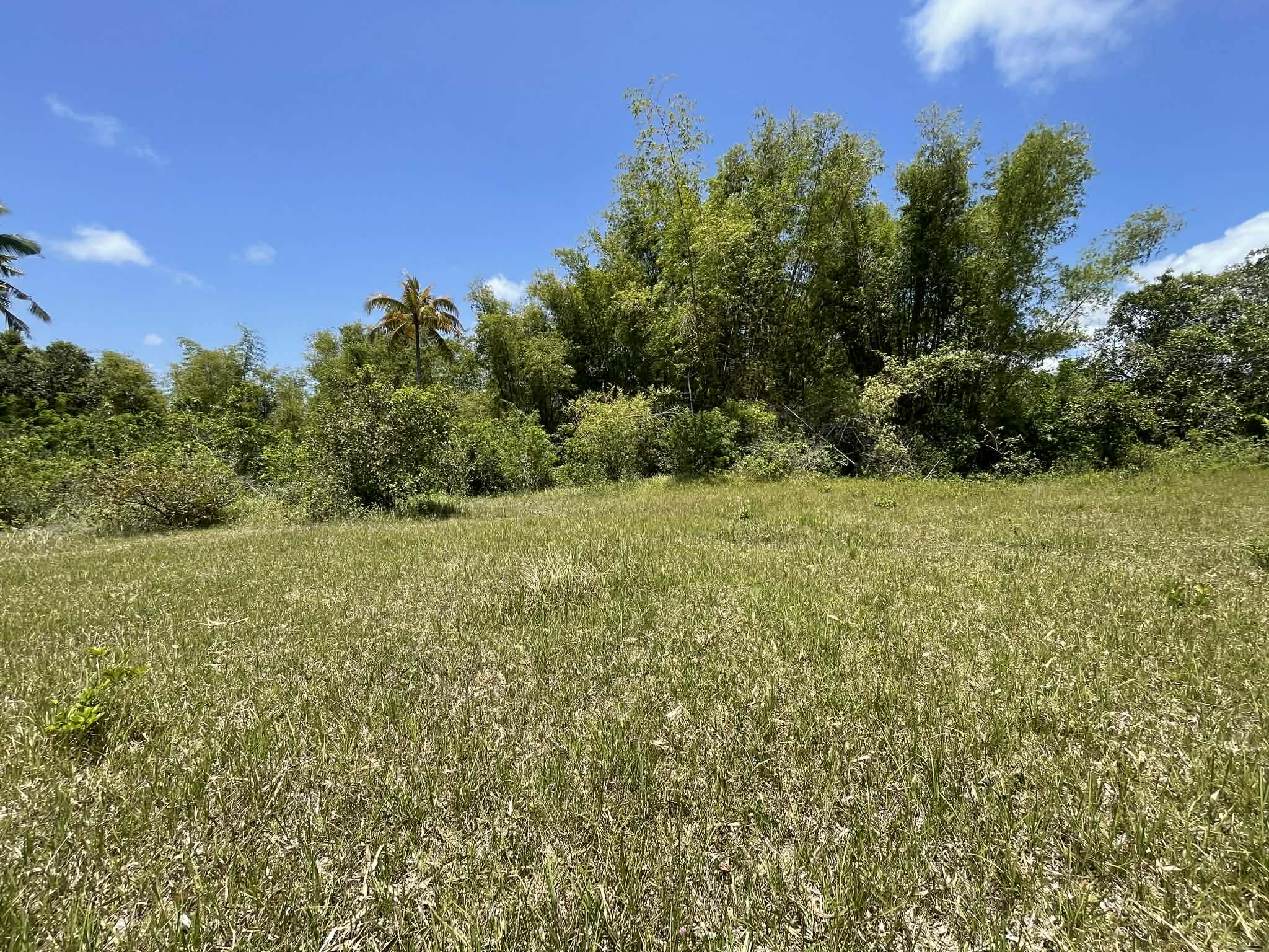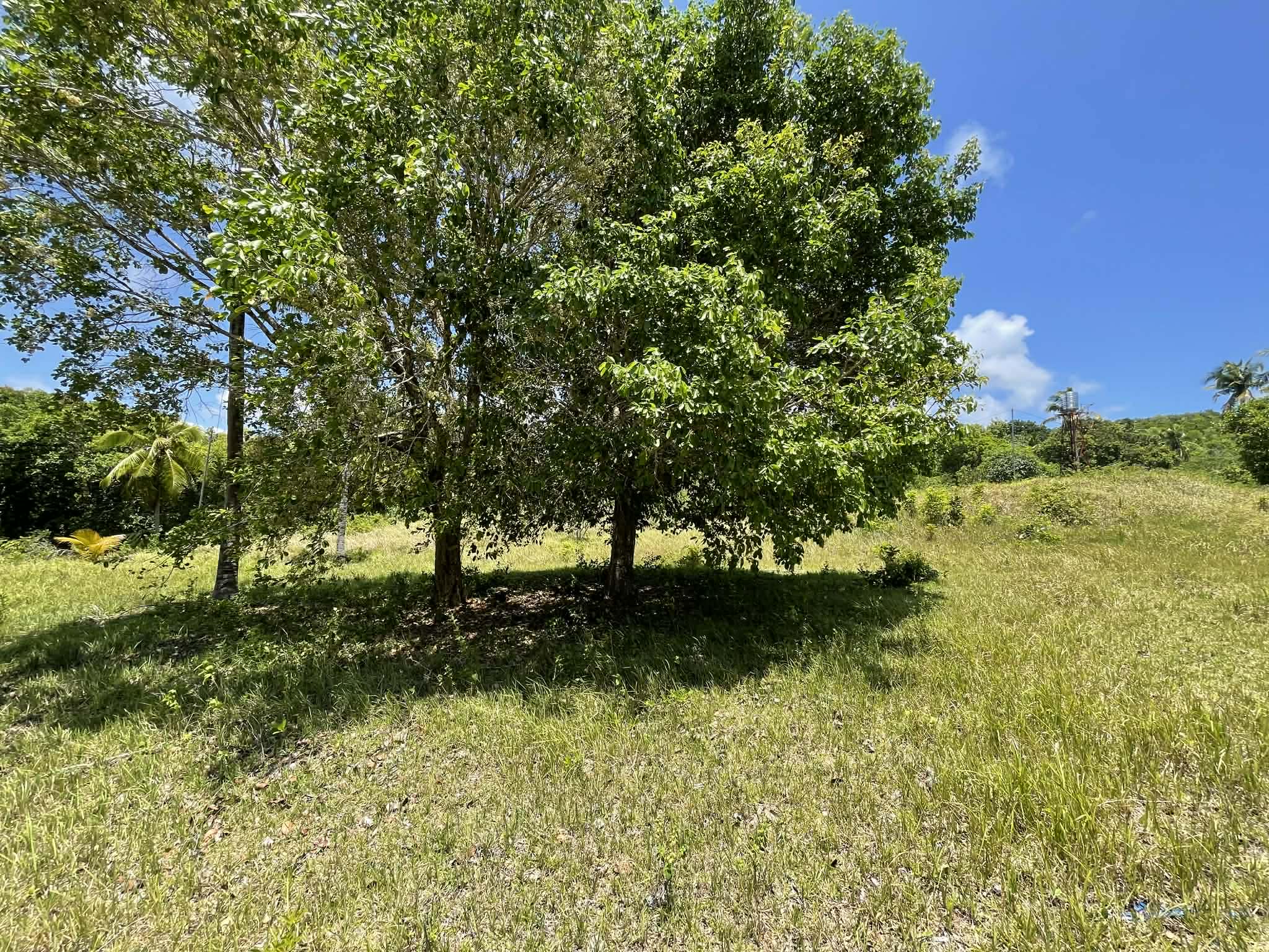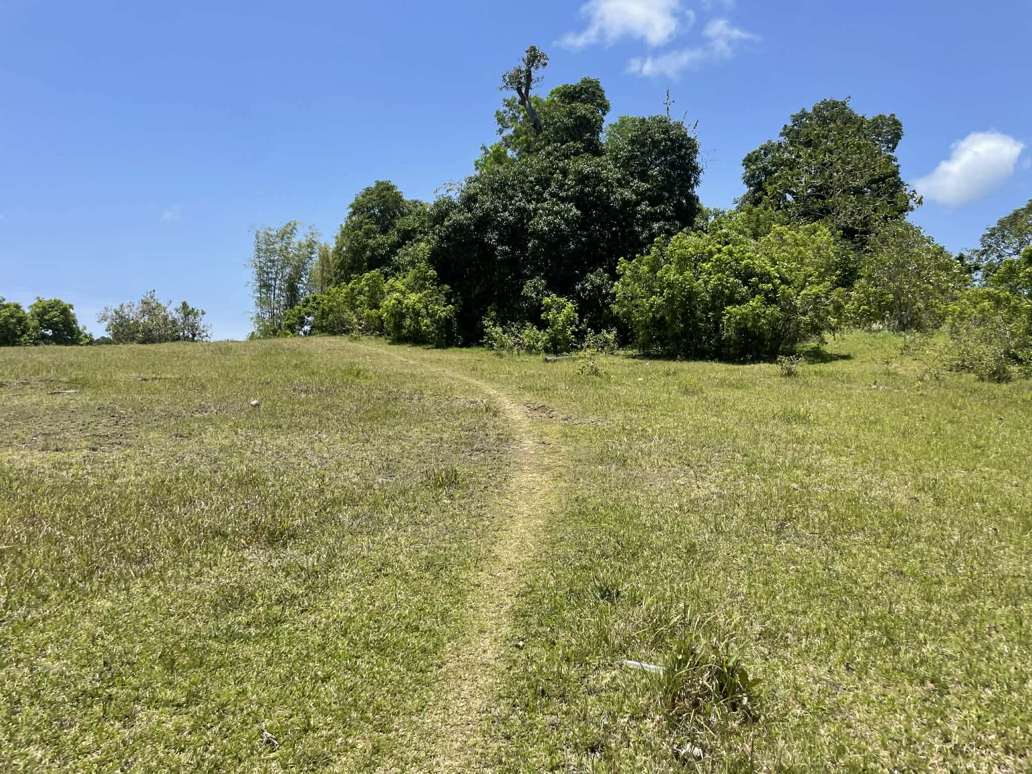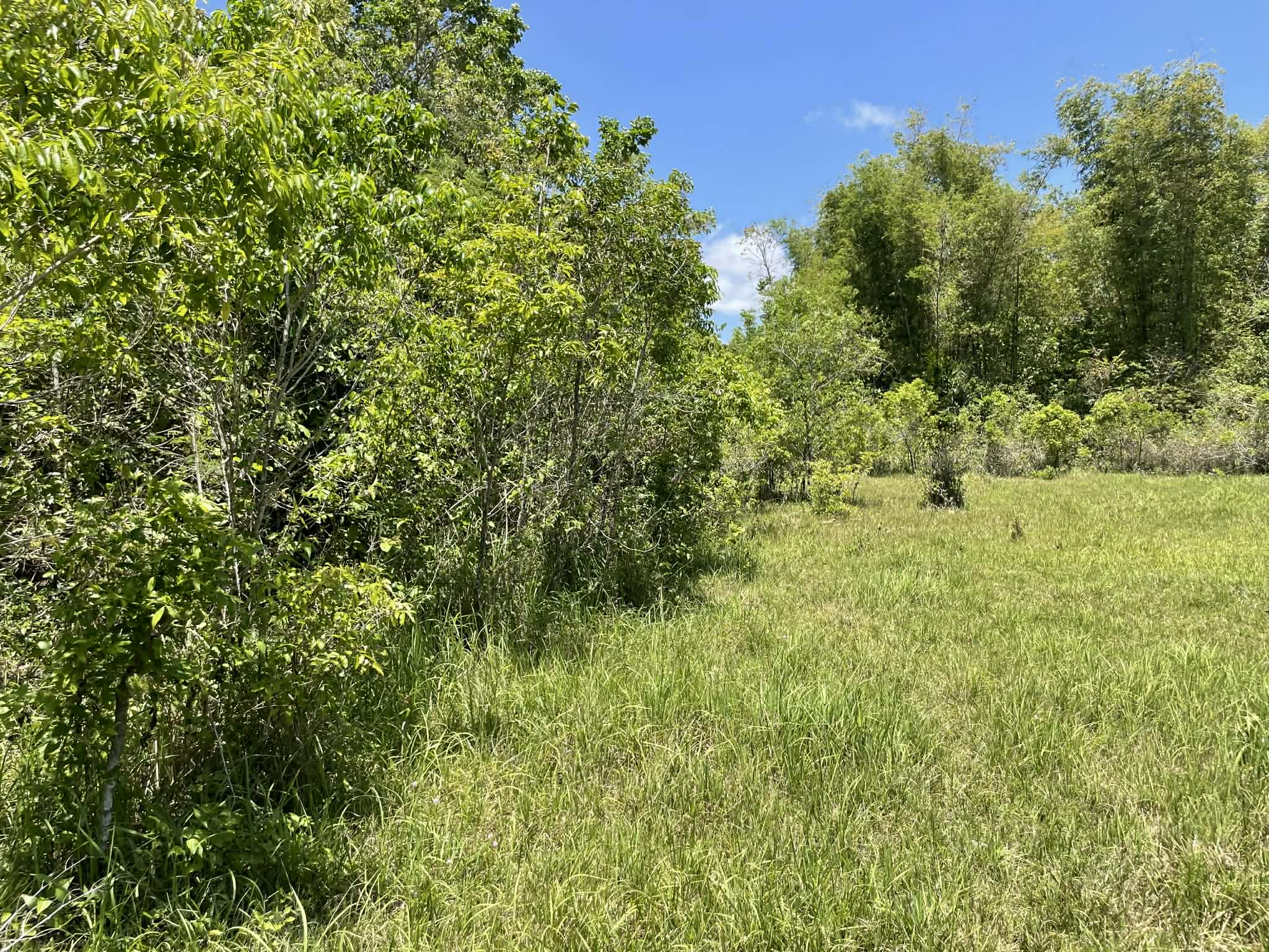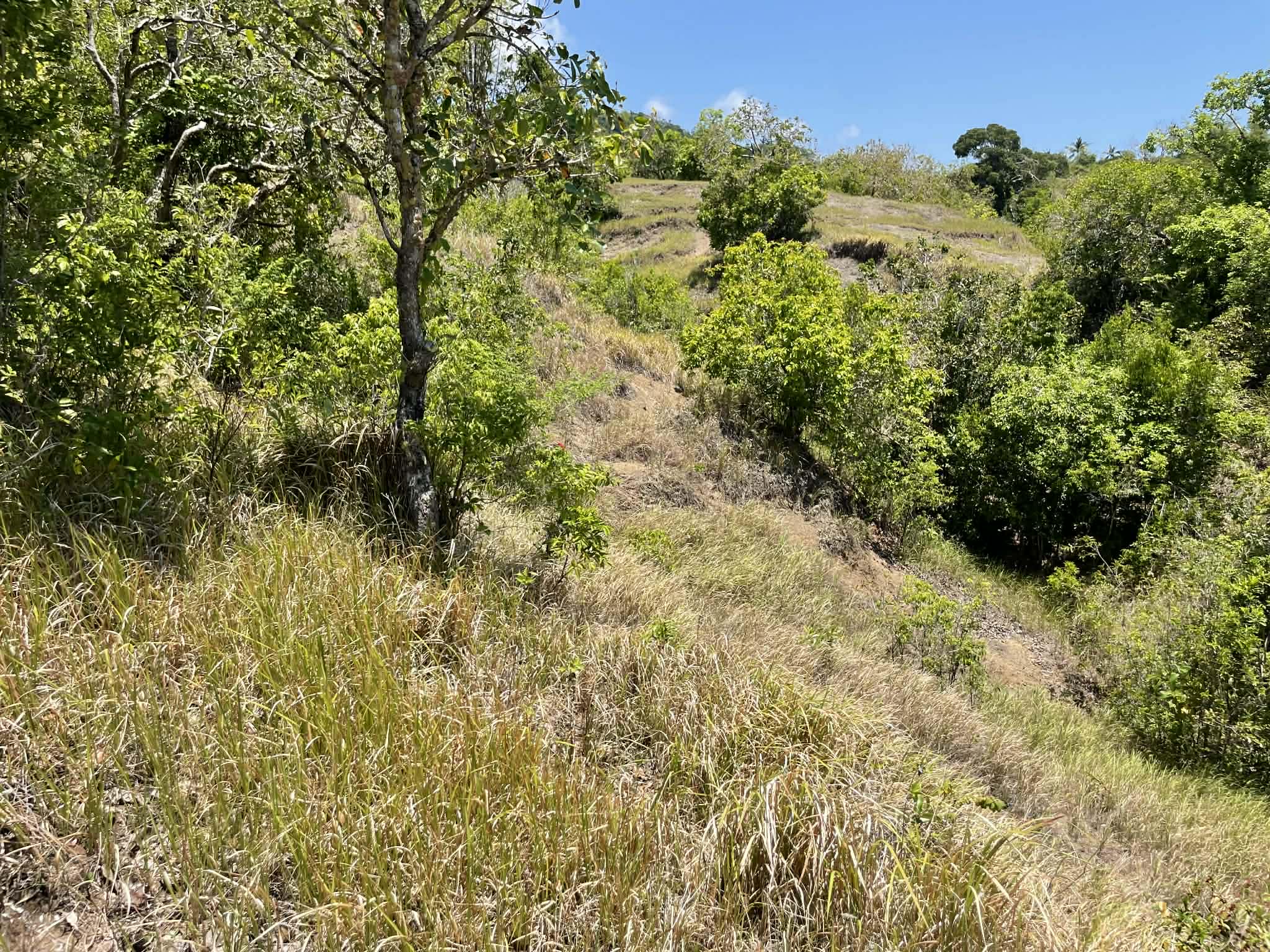 This expansive property offers a wide, open landscape with predominantly flat terrain, complemented by a gentle slope that remains highly usable and ideal for development. The land features broad grassy areas surrounded by lush greenery, creating a peaceful and natural setting.