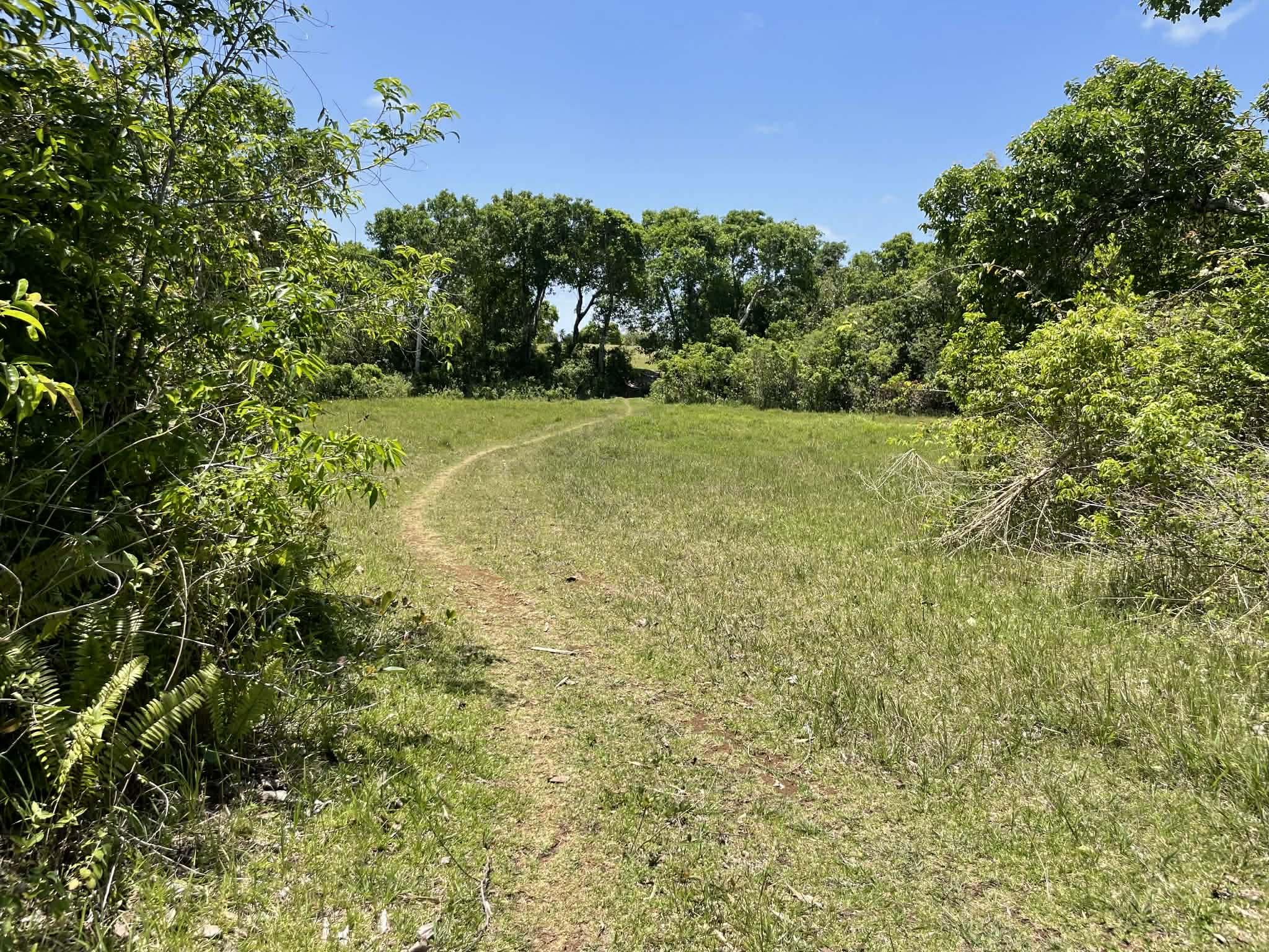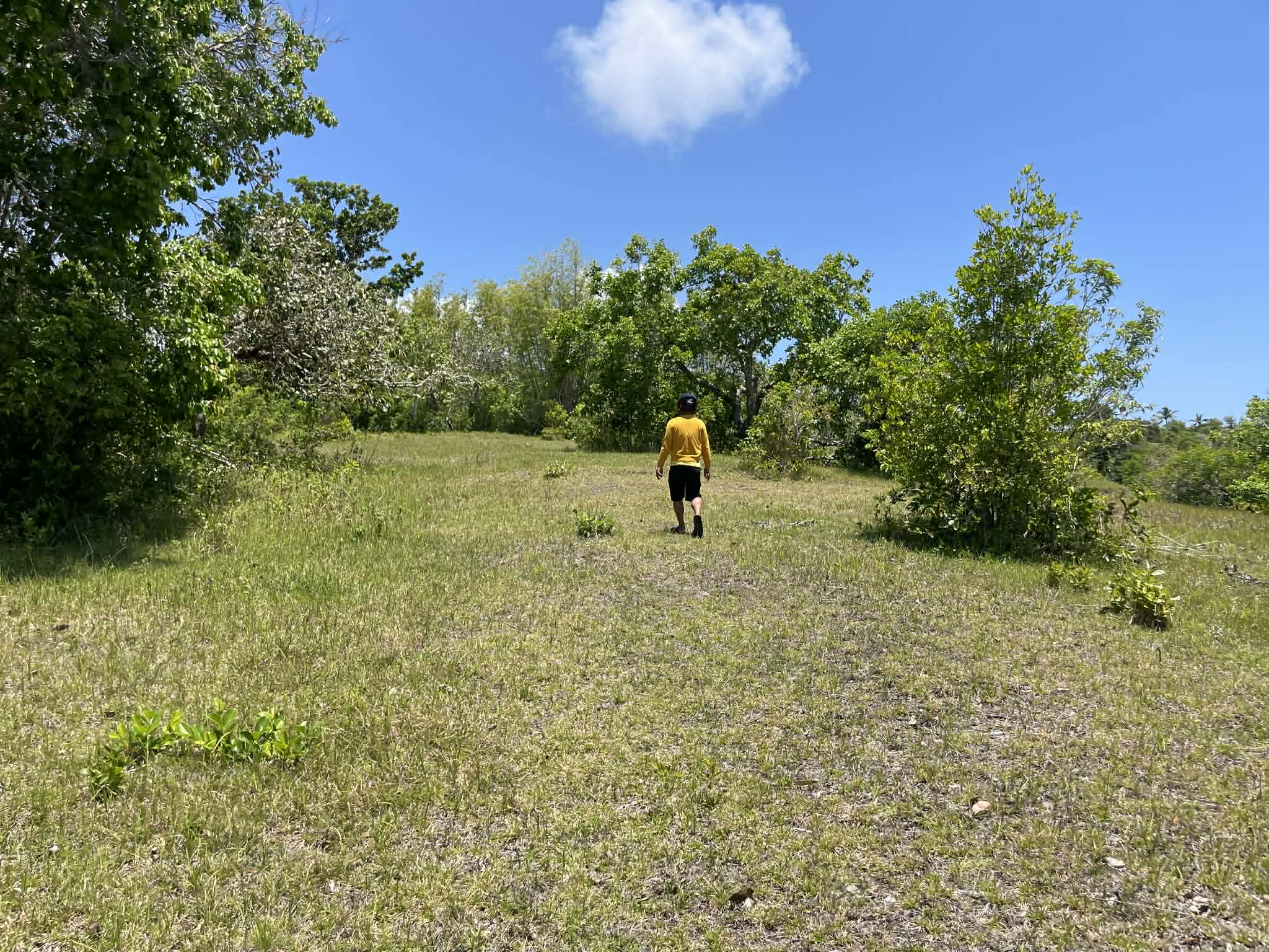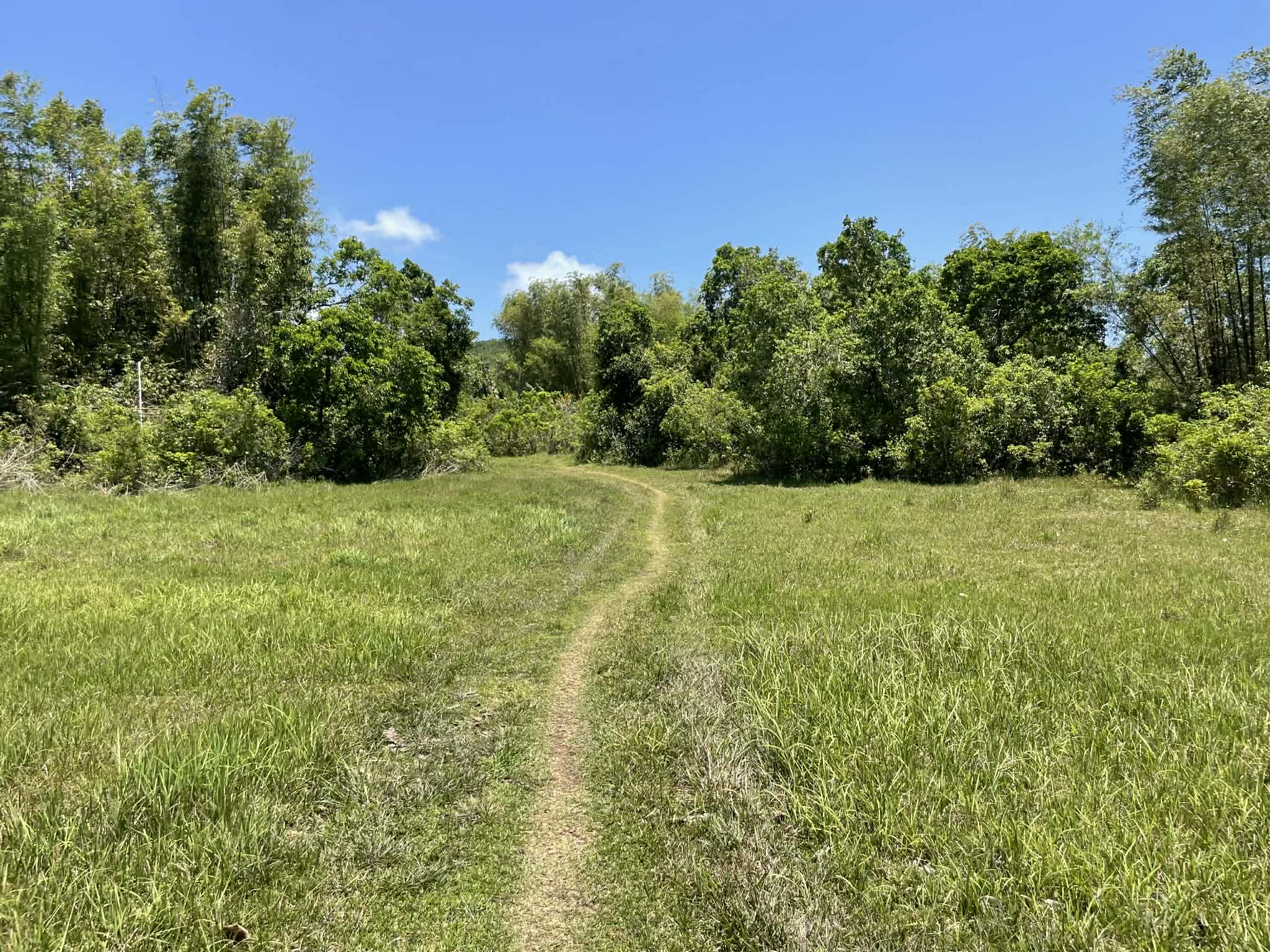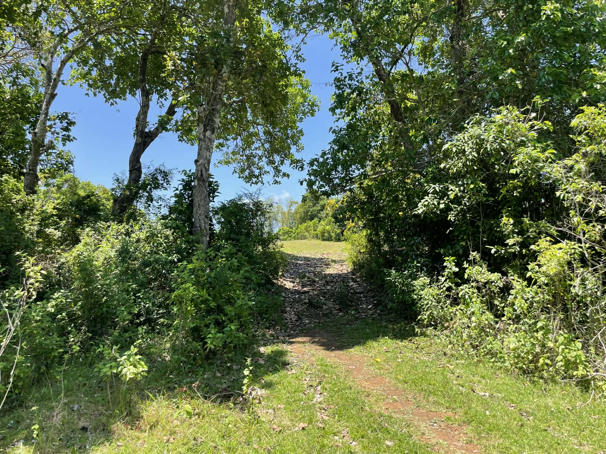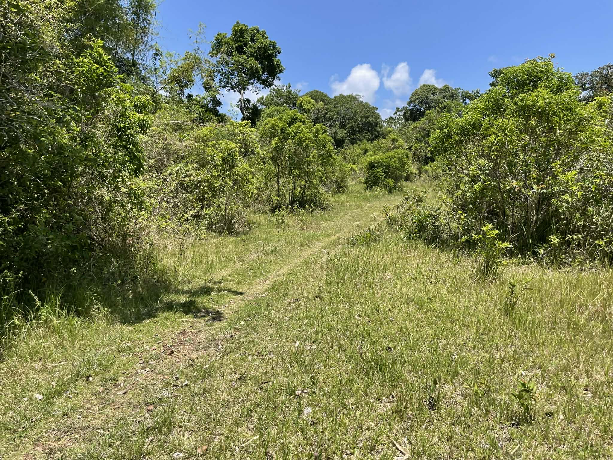 This expansive property offers a wide, open landscape with predominantly flat terrain, complemented by a gentle slope that remains highly usable and ideal for development. The land features broad grassy areas surrounded by lush greenery, creating a peaceful and natural setting.