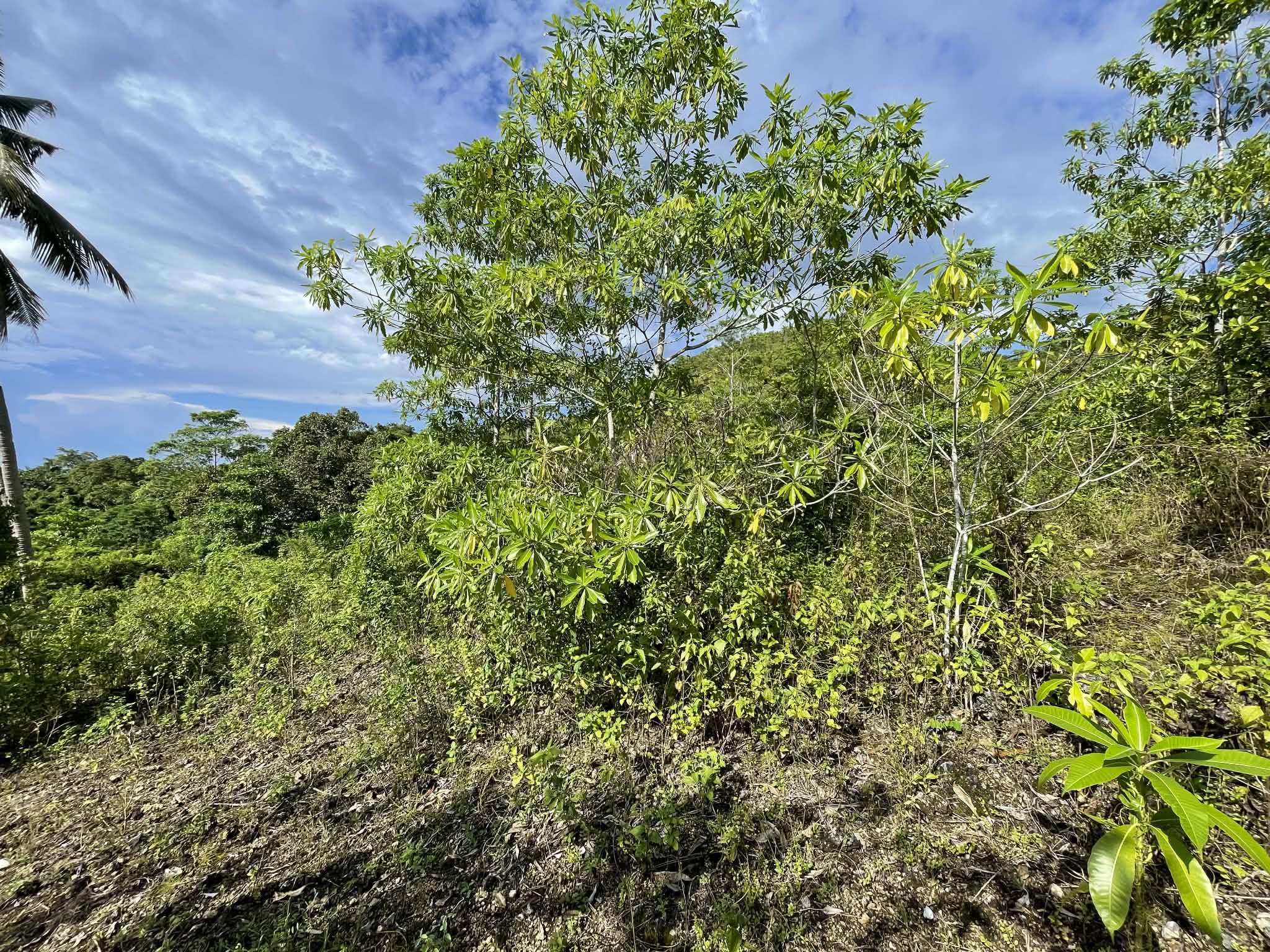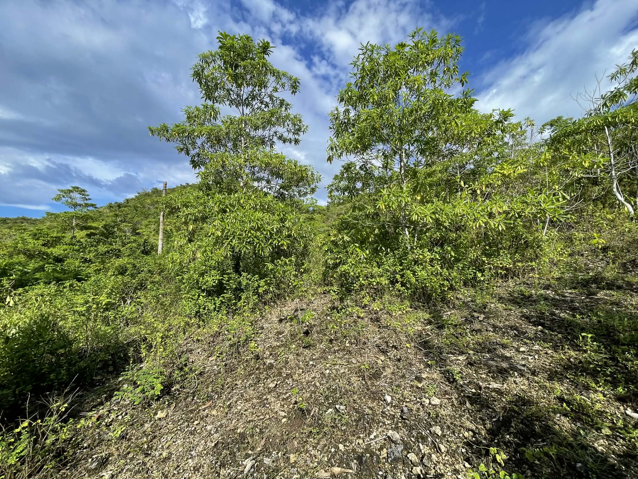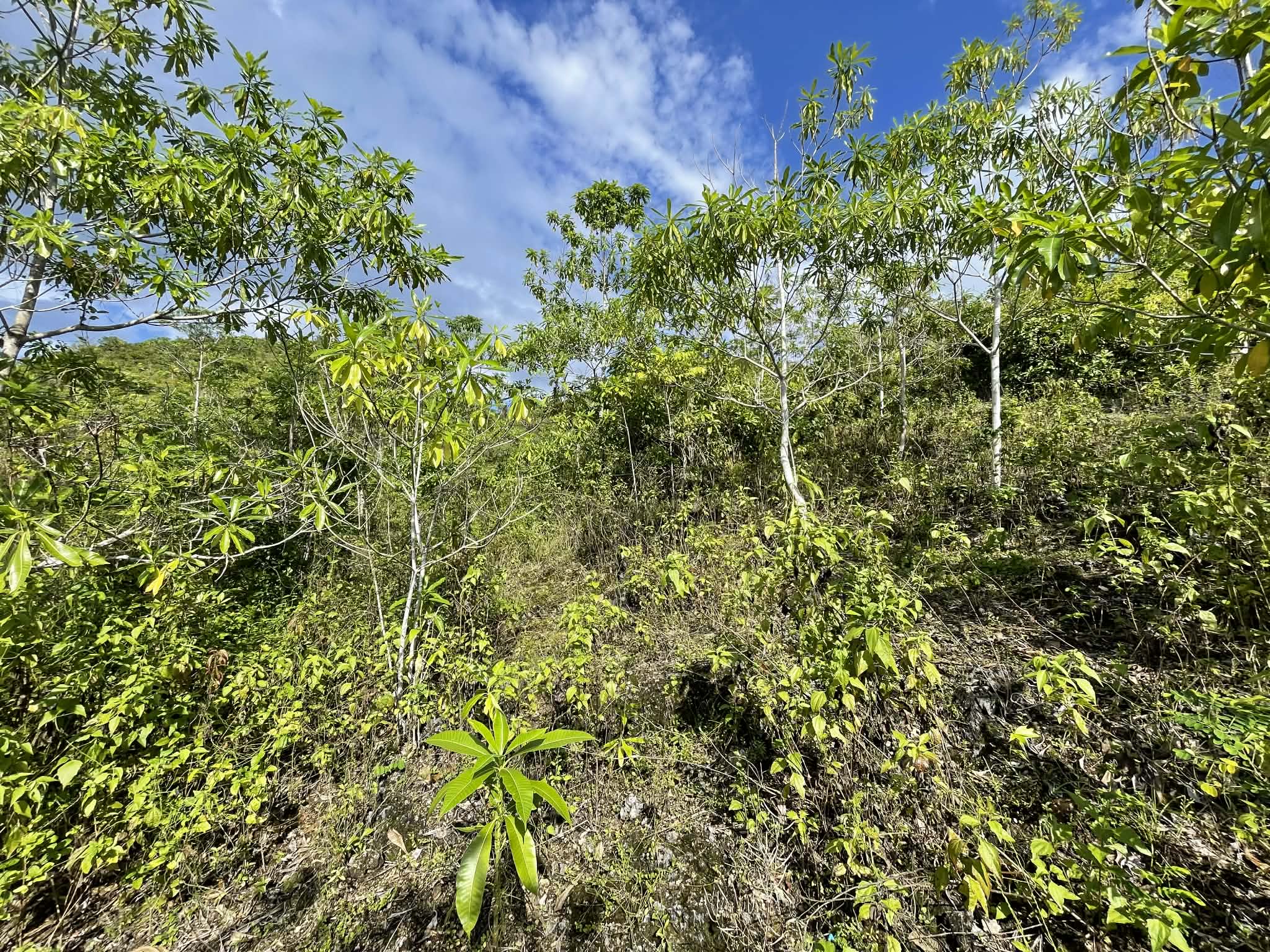 The terrain combines gentle slopes with some steeper areas, creating natural elevation points ideal for landscaping or structure placement. The lot simply requires minor clearing to fully maximize its features and usability.