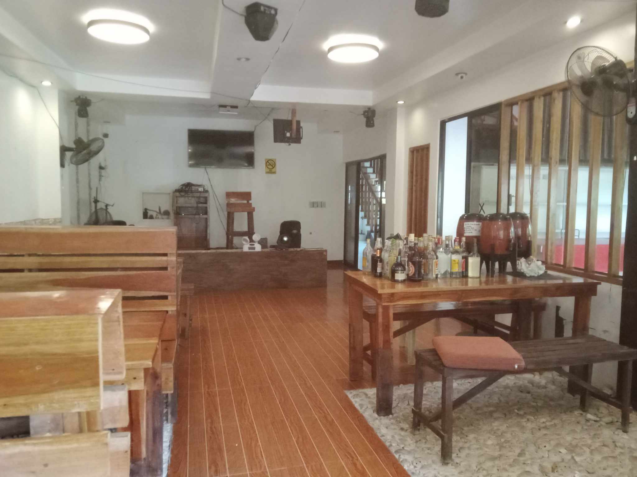Currently the property is close as it is under construction for more extension. It has a basement which consists of dorm rooms with also private karaoke rooms, next floor consist of a restaurant, a kitchen, a bar, it has also a billiard area and also rooms with bunk beds . The second floor consists of accommodation rooms and entertainment karaoke rooms. And for the third floor it is with 9 under construction rooms and a smoking area. It also has an unfinished swimming pool. The property has a magnificent ocean view as you can see the sea in the back part of the building.